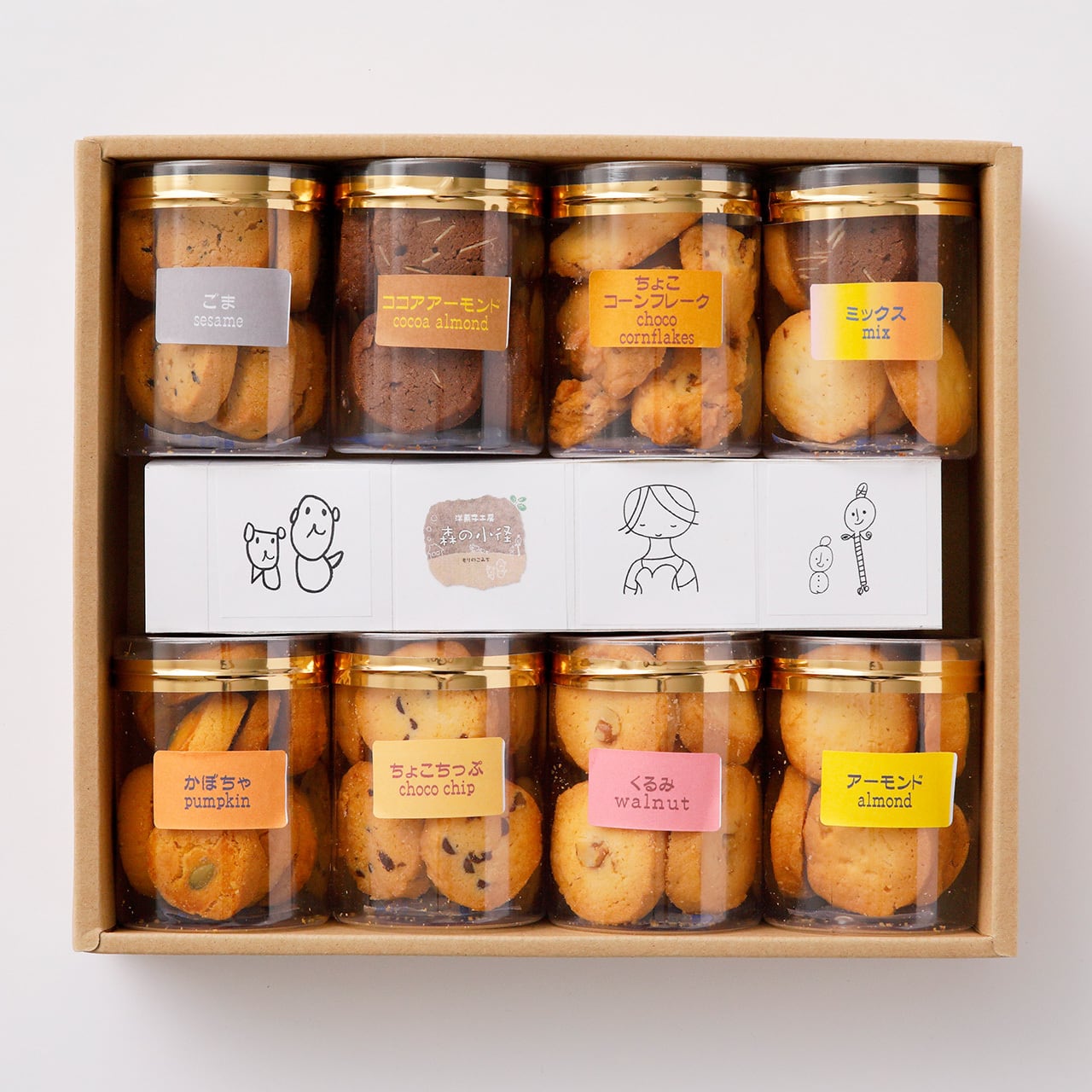 ●内容:クッキー・焼菓子8種類(アーモンド・ちょこちっぷ・ココアアーモンド・かぼちゃ・ごま・くるみ・チョココーンフレーク・ミックス)